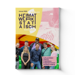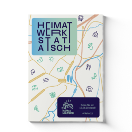 Wir gestalten zwei Stadtteilmagazine und Logos mit erzählerischem Ansatz. Im ersten Magazin sind die Bilder frei angeordnet, ungebunden. Im zweiten Magazin sind alle Elemente verwoben. Das zeigt den Prozess. Das erste Magazin erscheint vor dem KaffeeklATSCH, das zweite danach: Begegnungen schaffen Verbindungen. Das spielerische, zeitgemäße Design gibt dem Projekt eine positive Dynamik.